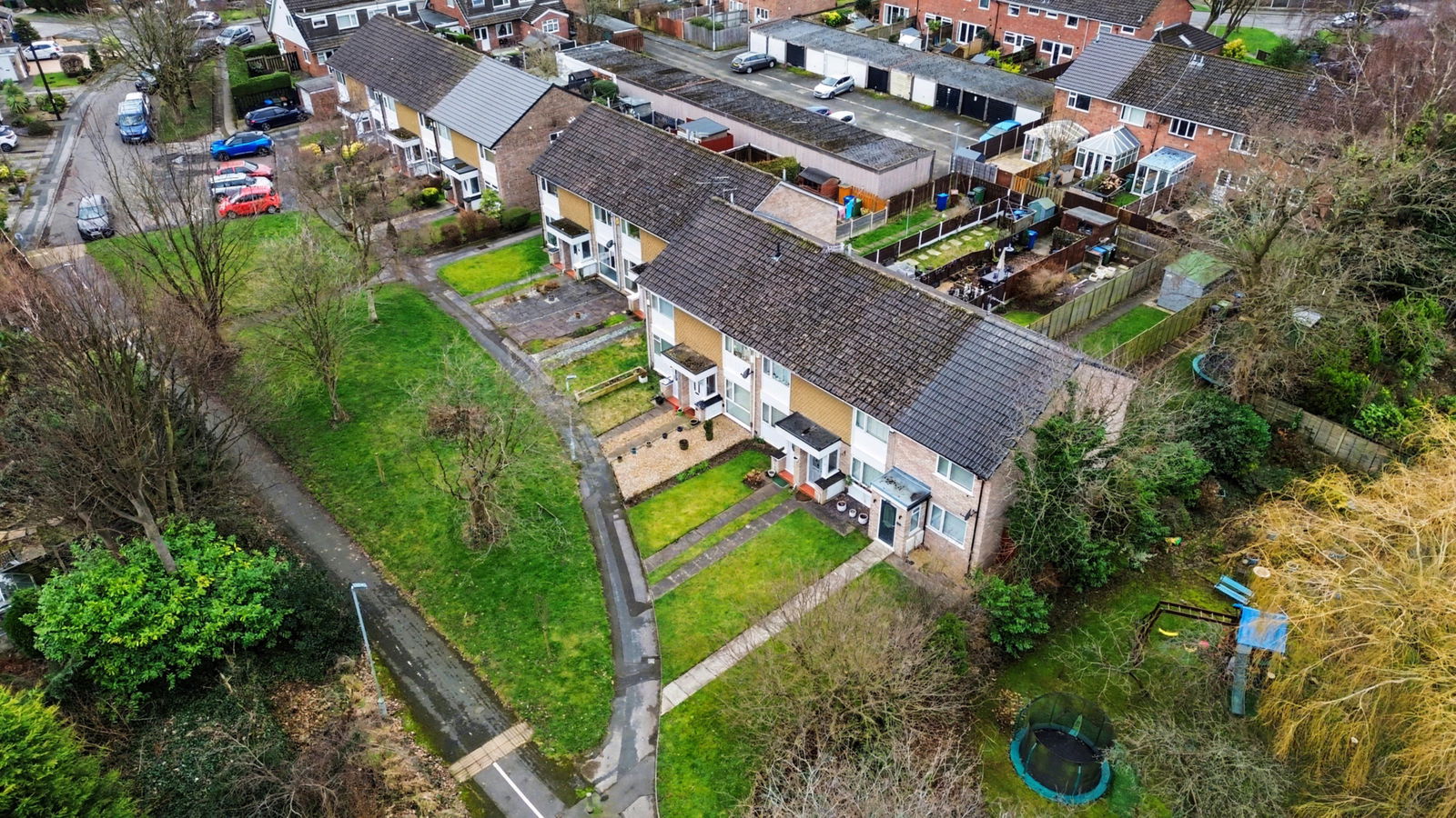 Upstairs there are two genuine doubles (no token box room) and a tidy bathroom. The front isn’t overlooked, just greenery – so it feels private as well as quiet.
