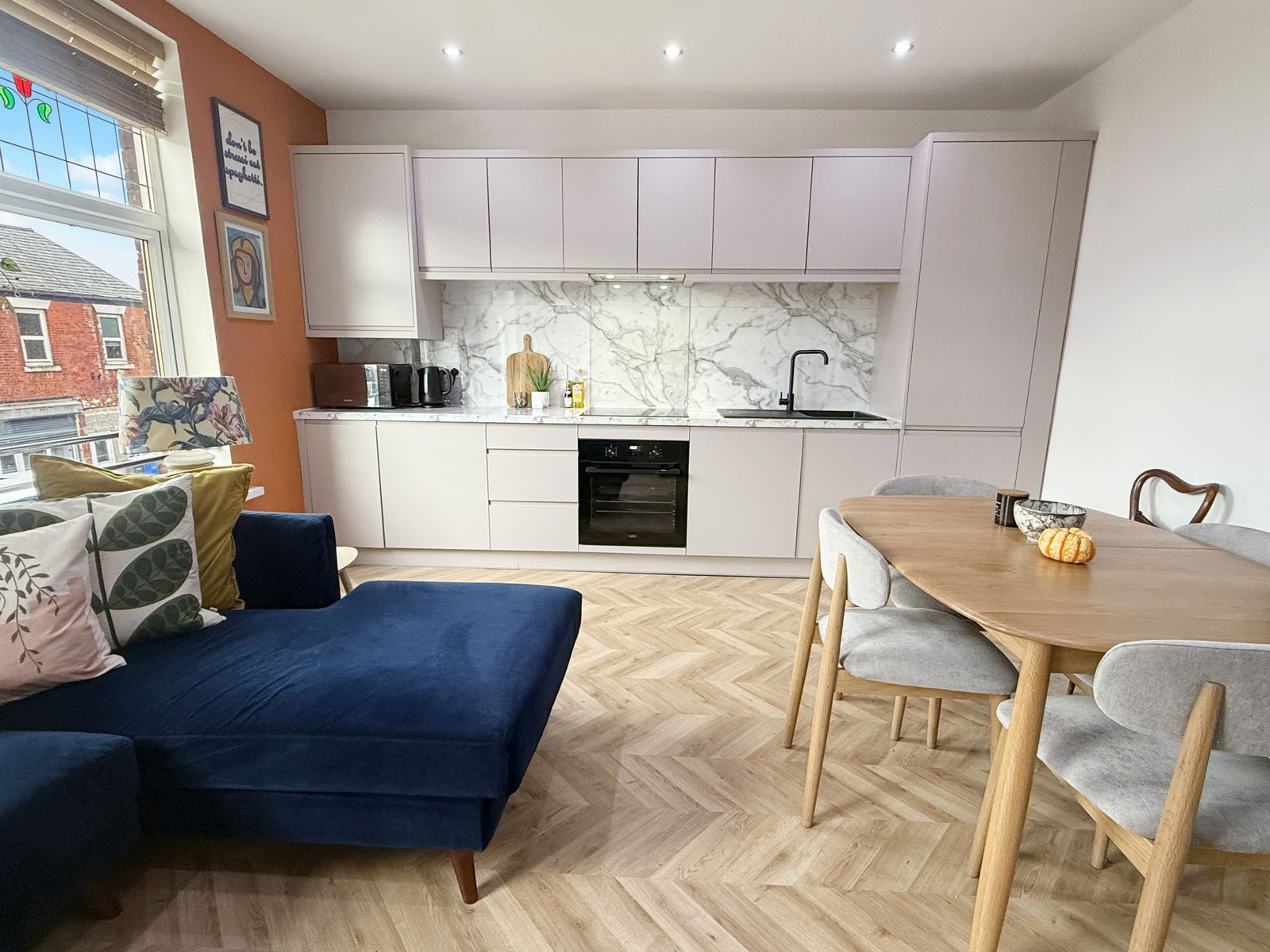 Location’s spot on: an easy walk to Edgeley, Stockport Market/Old Town, Stockport County on match days, and the train station for quick links into the city.